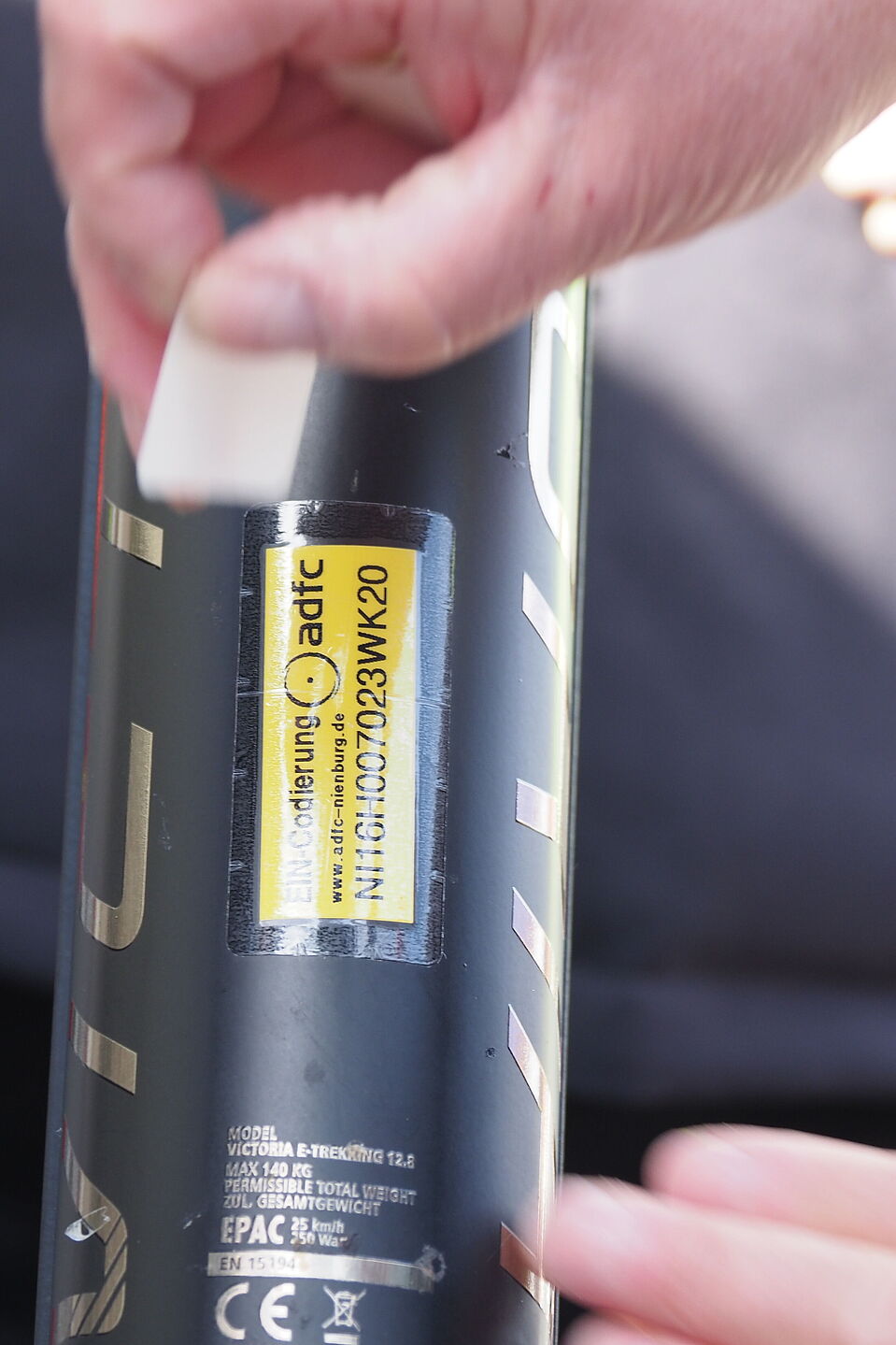 Für die Kennzeichnung bietet sich die Klebecodierung an, da sich die Aufkleber später rückstandslos entfernen lassen. Wer nach dem Leasing-Ende das Dienstrad übernimmt, kann eine permanente Codierung nachtragen.