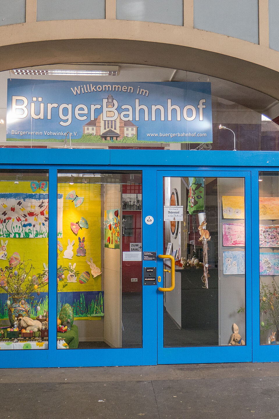An einer großen Ampelkreuzung (Kaiserplatz) biegen wir rechts ab in die Bahnstraße und kommen nach einer großen Unterführung zum Bahnhof Vohwinkel, dessen Äußeres und Inneres auf eine glückliche Vergangenheit verweist.